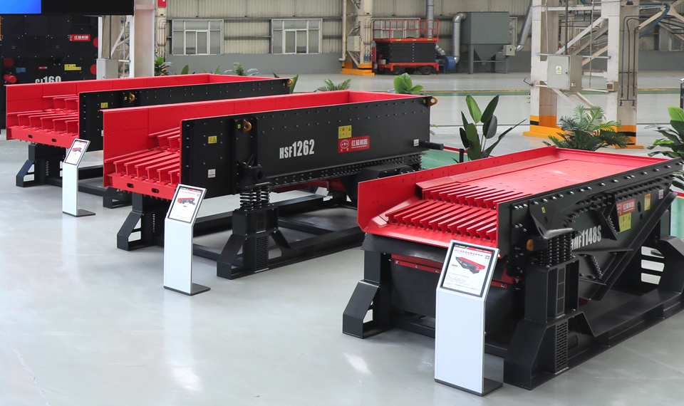 HSF系列重型棒條振動(dòng)給料機(jī),按照重型工況設(shè)計(jì),適用于石料、建材和冶金礦山行業(yè),為大中型初級(jí)破碎設(shè)備提供給料。結(jié)構(gòu)緊湊,抗沖擊力強(qiáng),外置偏心塊設(shè)計(jì)使得給料機(jī)振幅調(diào)整方便快捷,獨(dú)立的耐磨棒條使得棒條間隙可隨意調(diào)整,很大程度優(yōu)化進(jìn)入破碎機(jī)的物料粒度,提高破碎機(jī)產(chǎn)能,降低能耗。